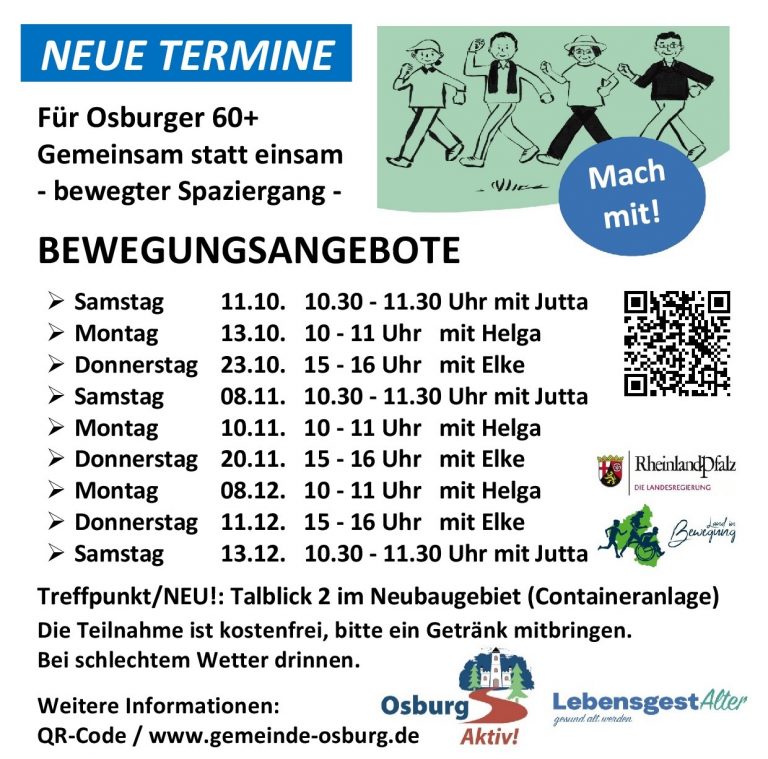 BEWEGUNGSANGEBOTE für Osburger 60+ – Neue Termine…