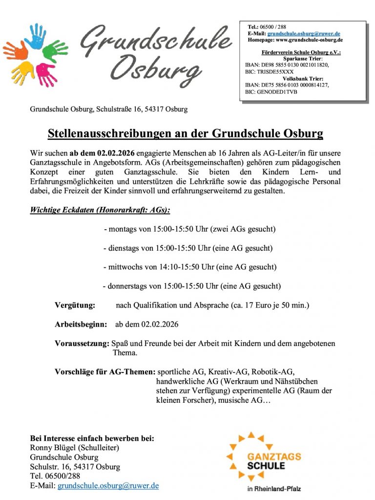 Am Samstag, 06.12.2025, führt der Jagdpächter eine Drückjagd zur Reduzierung des Wildbestandes durch. Auf der gesamten Fläche der Gemeinde Osburg und übergreifend in Riveris und Waldrach wird in der Zeit...