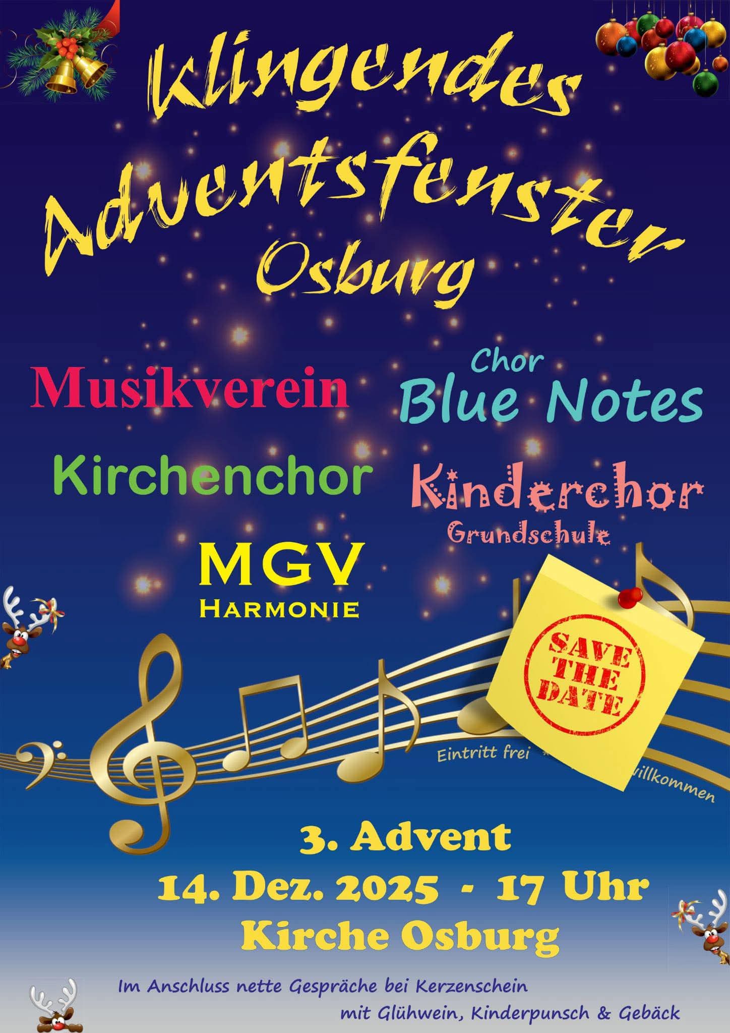 Herzliche Einladung an die Osburger Senioren zum Singkreis Am 1. Mittwoch des Monats treffen sich um 15 Uhr die Osburger Senioren zum gemeinsamen Singen im Vereinshaus des MGV, Unterstr. 9a. Das Angebot wird auf ehrenamtlicher Basis angeboten und ist kostenfrei. Wer